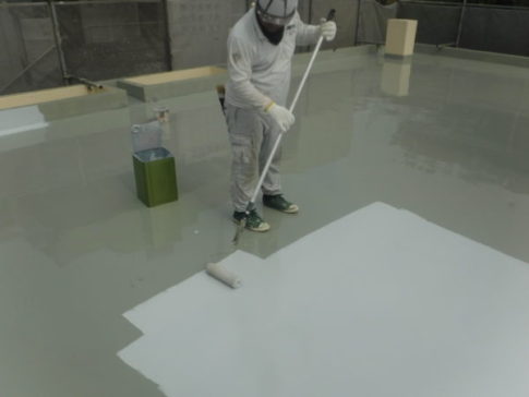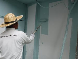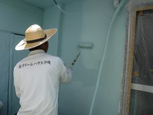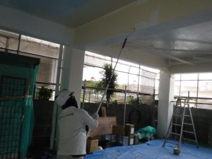 現場親方ブログ2019年6月3日 おはようございます。當真様邸の作業内容報告です。 今日の作業は、屋上・ベランダ遮熱材塗装を行いました。 【防水材を保護する役目と室内の温度を軽減させるため遮熱材を2回塗って仕上げます。】