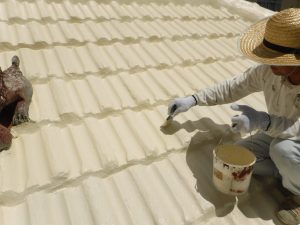 現場親方ブログ2019年5月29日 おはようございます。本日で又吉様邸の全作業が終わり、無事完工いたしました。 本当にありがとうございました。 作業最終日は庇上遮熱材塗装を行いました。 【庇上遮熱材塗布】