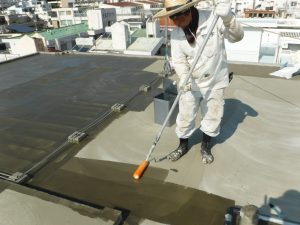 現場親方ブログ2019年6月6日 おはようございます。首里タウンハウス様の作業内容報告です。 今日の作業は、屋上水溜り勾配調整、下地調整材塗布、プライマー塗布を行いました。 【水が溜まらないようにセメントで勾配をつけます。】 【下地調...