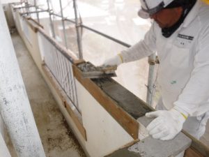 現場親方ブログ2019年5月18日 おはようございます。當真様邸の作業内容報告です。 今日の作業は、はつり落とした箇所、ひび割れ補修箇所のセメント埋戻しを行いました。 【セメント埋戻し】 【ひび割れ補修箇所左官仕上げ】