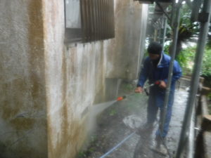 現場親方ブログ2020年9月3日 おはようございます。外間様邸の作業内容報告です。 前回に引き続き、外壁補修を行いました。 【劣化防止材塗布】 【セメント埋戻し】 【ひび割れ補修】
