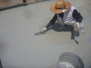 現場親方ブログ2020年9月17日 おはようございます。外間様邸の作業内容報告です。 今日の作業内容は、仕上げ塗装と屋上水溜り勾配調整、下地調整剤塗布を行いました。 【仕上げ塗装】 【水溜り勾配調整】 【下地調整剤塗布】