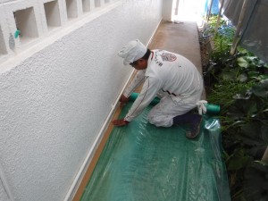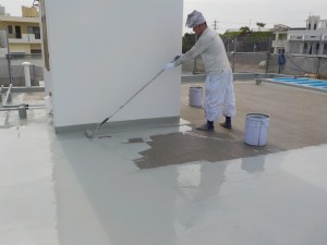 2017年5月24日 今日の作業はプライマー(密着剤)塗布です。 防水材剥がれ防止に密着剤を塗っていきます。