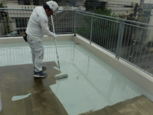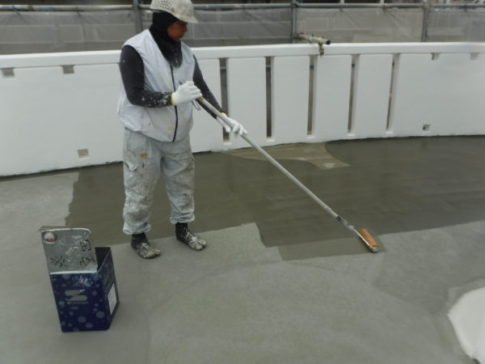 現場親方ブログ2020年4月16日 おはようございます。新城様邸の作業内容報告です。 今日の作業は屋上・庇防水工事とトタン張りを行いました。 【下地調整材塗布】 【防水材剥がれ防止にプライマー(密着剤)を塗布します。】 【トタン張り】