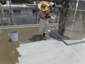 現場親方ブログ2019年7月23日 おはようございます、上地様邸の現場報告です! 屋上遮熱防水 プライマー塗布(接着剤) 入り隅コーナー処理 ウレタン防水1層目 ウレタン防水2層目 遮熱材(保護材)塗布 2回目 あとは細かい残工事で終...