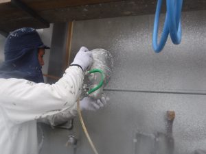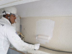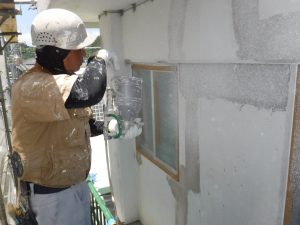 現場親方ブログ2019年8月14日 おはようございます。伊志嶺様邸の作業内容報告です。 今日の作業は、外壁シーラー(密着剤)塗布を行いました。 【塗料剥がれ防止に密着剤を塗布します。】
