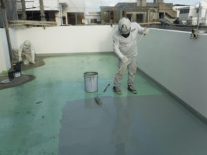現場親方ブログ2019年11月29日 おはようございます。新垣様邸の作業内容報告いたします。 【水溜り勾配調整】 【中塗り塗装】 【仕上げ塗装】