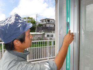 現場親方ブログ2019年7月10日 おはようございます、上地様邸の現場報告です! コーキング充填面左官仕上げ 窓回りコーキング充填 シーラー(接着材塗布)・下塗り塗装 作業が進み次第またアップします!