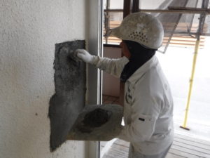 現場親方ブログ2019年8月13日 おはようございます。今日の伊志嶺様邸の作業内容報告です。 今日の作業は、外壁補修、建物継ぎ目、窓廻りコーキング打ち、養生を行いました。 【外壁ジャンカ箇所左官仕上げ】 【コーキング材剥がれ防止に密着...