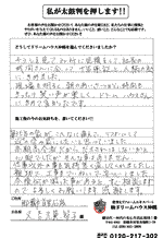 口コミ評判那覇市安謝 前田さま カスタマーレビュー ★★★★★ Q.どうしてドリームハウスを選んでくれたのですか? 津嘉山様の紹介で。最初、不安もありましたけど、社長をはじめ職人さんが誠実で、技もすばらしく何よりも私たちに...