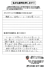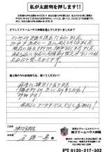 口コミ評判那覇市松島 Hさま カスタマーレビュー ★★★★★ Q.どうしてドリームハウスを選んでくれたのですか? 家に入っていたチラシを見て、おもしろいなと興味を持ち、ホームページを開いてみると、とても評判が良かったので、...