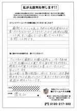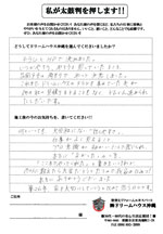 口コミ評判那覇市識名 Mさま カスタマーレビュー ★★★★★ Q.どうしてドリームハウスを選んでくれたのですか? チラシとホームページで決めました。いつかやろう、やろうと思っていたところ、台風9号の雨漏りでやっと決意しまし...