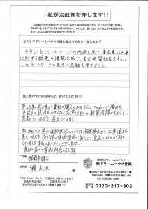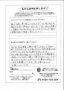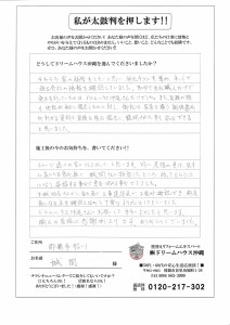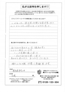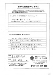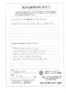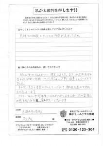 口コミ評判那覇市識名 瀬良垣様 カスタマーレビュー ★★★★★ Q.どうしてドリームハウスを選んでくれたのですか? チラシとホームページの内容を見て、貴企業の仕事に対する誠意や情熱を感じ、また城間社長を中心としたチームワ...