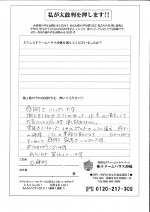 口コミ評判北中城村 當山様 カスタマーレビュー ★★★★★ Q.どうしてドリームハウスを選んでくれたのですか? 住宅フェアにてお会いするいっしょうけんめいにメンテナンスの説明をしていただいた。見積書を出していただき拝見す...